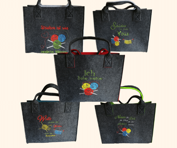 Ordnung im Strick-Chaos! ✨ Entdecke unsere hochwertigen, bestickten Filztaschen für Wolle & Handarbeit. Das perfekte Geschenk für Strickerinnen. Jetzt dein Unikat entdecken! 🧶